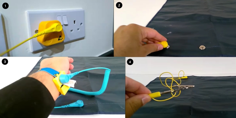 - The grounding plug is plugged into a power outlet. - The other end plugs into the anti-static mat where I’ll be working. - The wrist strap plugs into the mat as well to ground me. - The additional cable is can be used to ground the case.You’ll need a Philips and flat screwdriver for the assembly or you can get a cool kit like this one.