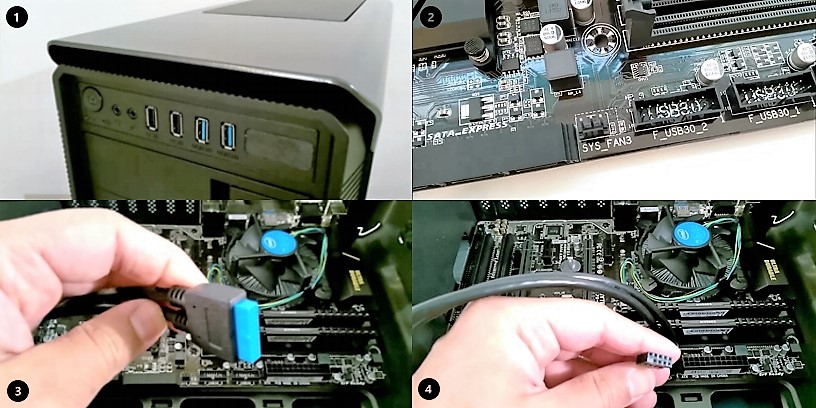 - I started with the USB 3.0 connector which plugs into the USB 3.0 header on the motherboard. Like the other cables, the notches prevent any mistakes when plugging it in.