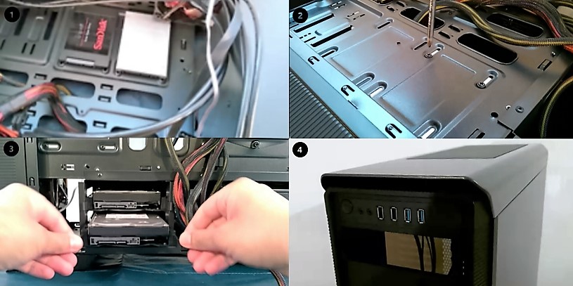 - My case has a combination of tool-less drive bays and areas on the case where drives are attached.