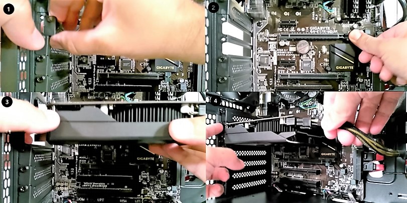 - If your card needs power choose the right connector from the PSU and plug it in. My graphics card uses the 6 pin power connector.